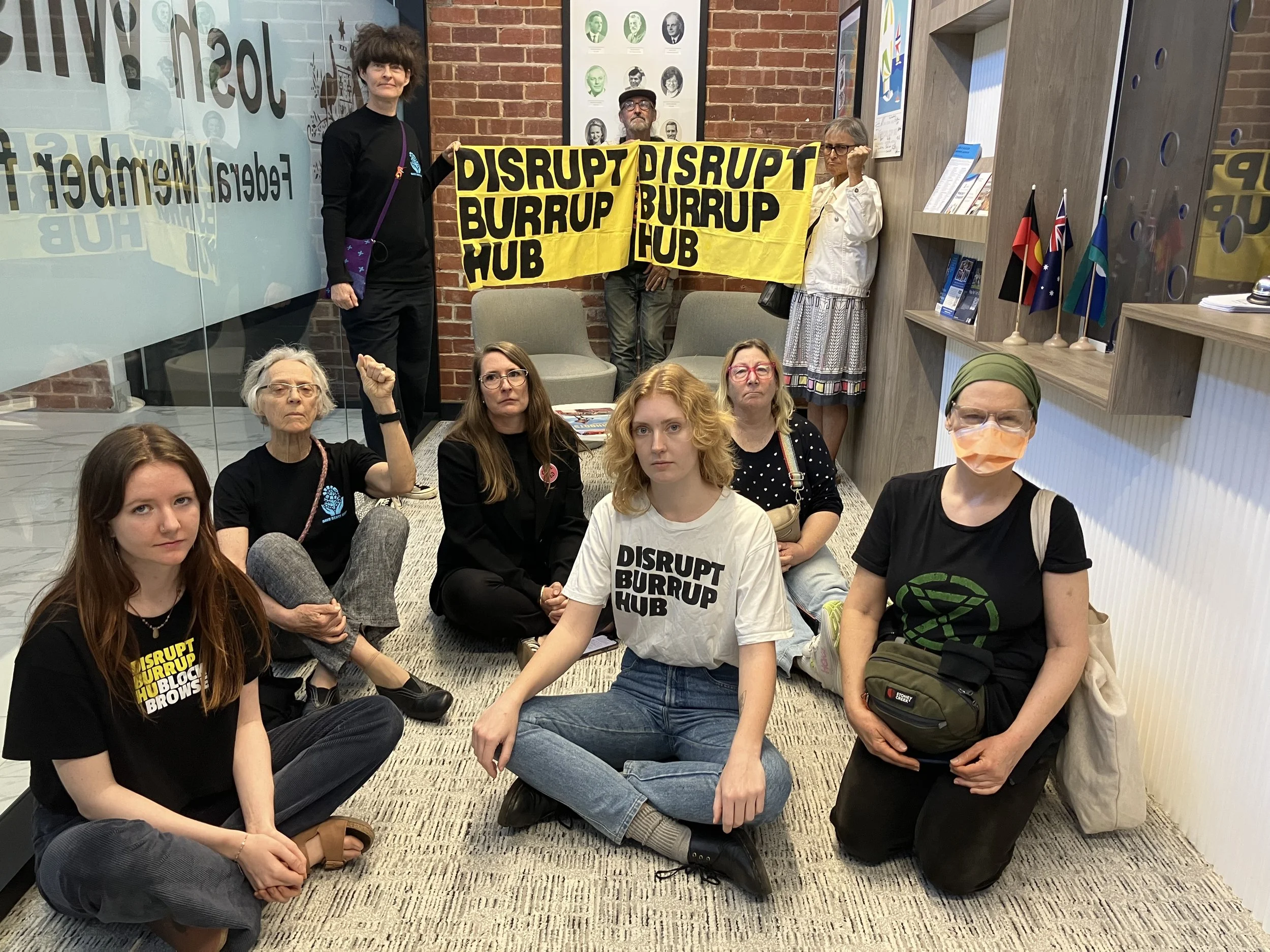 An alliance of campaigners from groups including Disrupt Burrup Hub, Grandparents for Climate Action and Voices for Climate have staged a sit-in at the office of Member for Fremantle Josh Wilson to demand the Labor government reject Woodside’s North West Shelf proposal at the Burrup Hub.